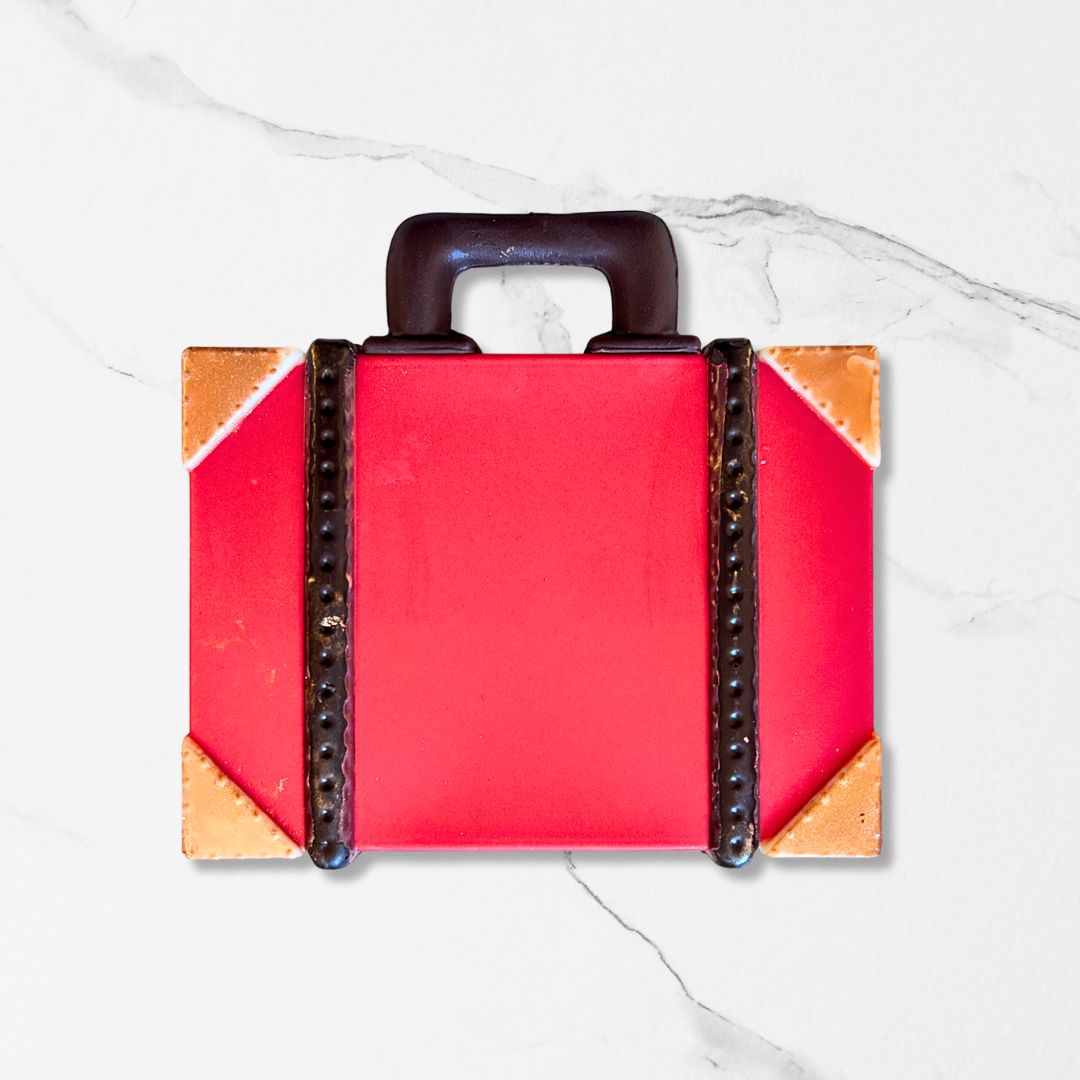 Handcrafted chocolate in a charming suitcase design, inspired by Santa’s holiday travels. Sold per piece.